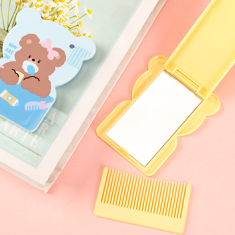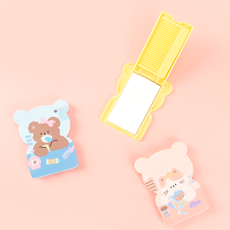 16061163 bear shape cartoon flip mirror comb