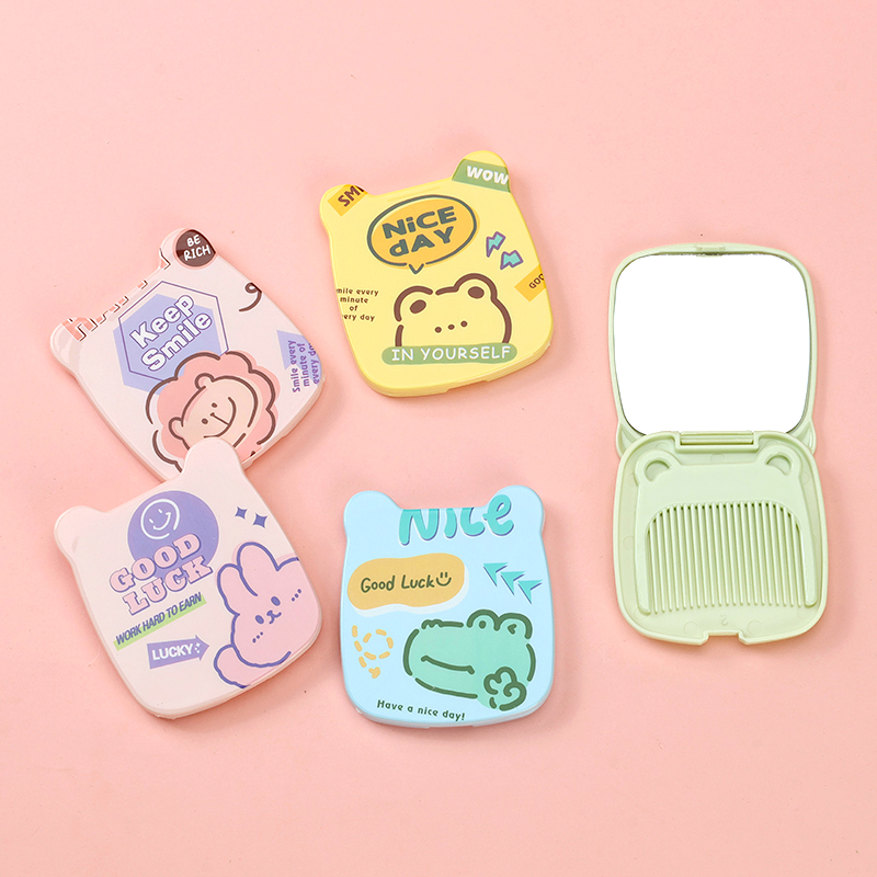 16062158 color cartoon flip mirror comb