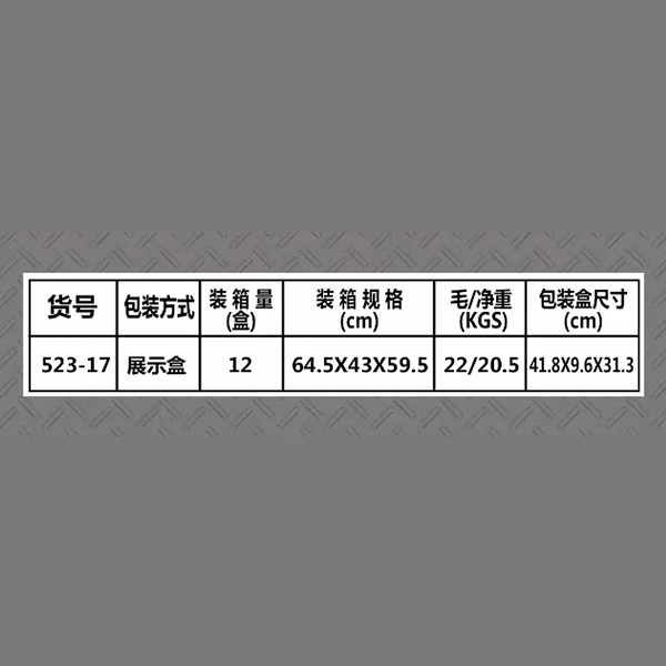 • PACKAGING: 1中包=6个,1箱=12中包