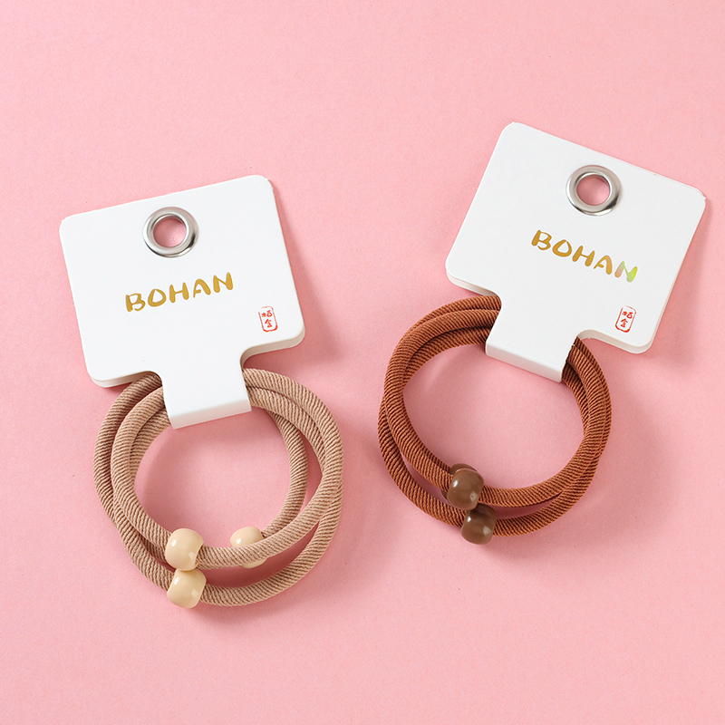 Boxed three brown beads twill rubber band
