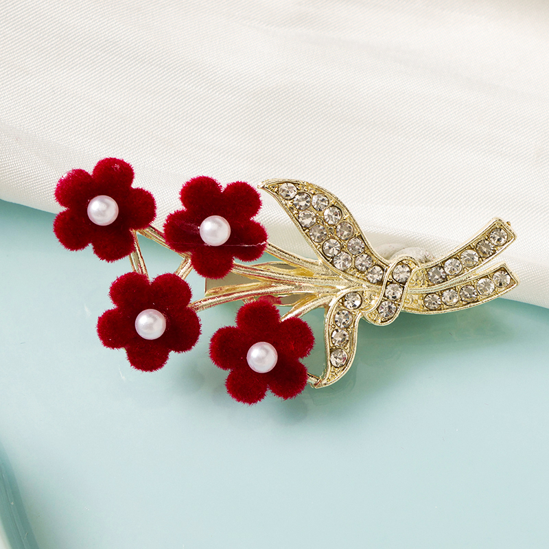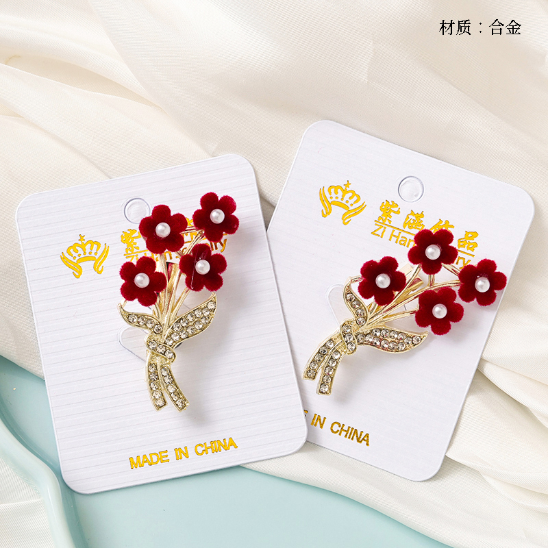 Why Choose Flocking rhinestone small red flower brooch?