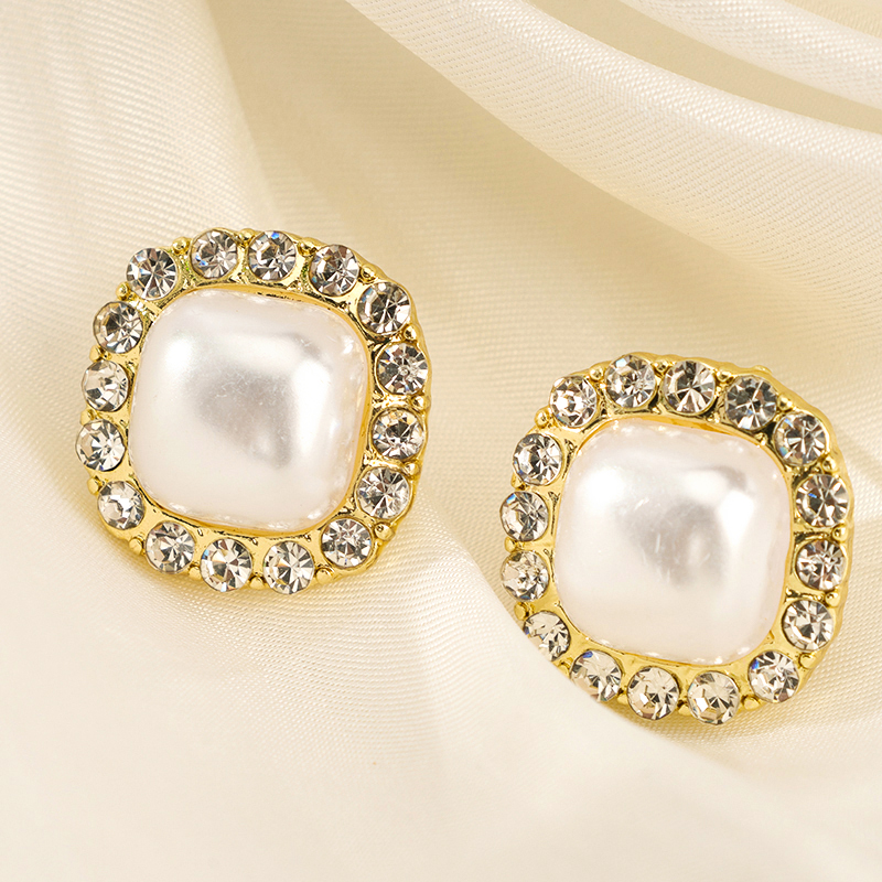 Order Full circle diamond square pearl stud earrings today and experience superior quality with excellent service. Join thousands of satisfied customers who trust us for their product needs. Shop now for the best deals and fast delivery!