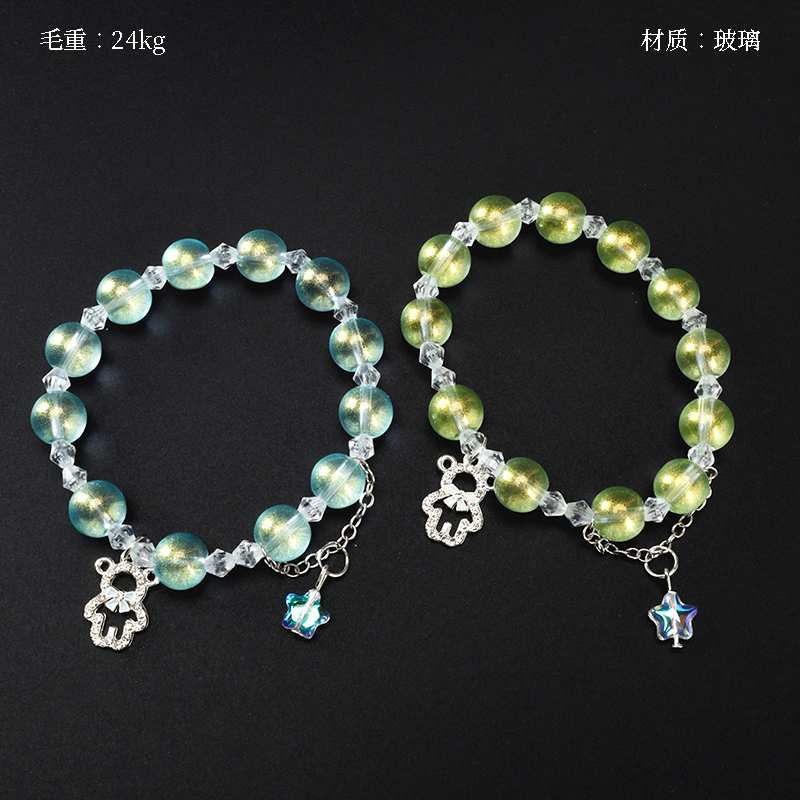 Gold powder hollow bear pendant bracelet