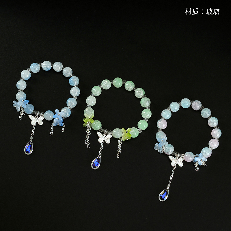 Ice Peach Blossom Butterfly Drop Bracelet