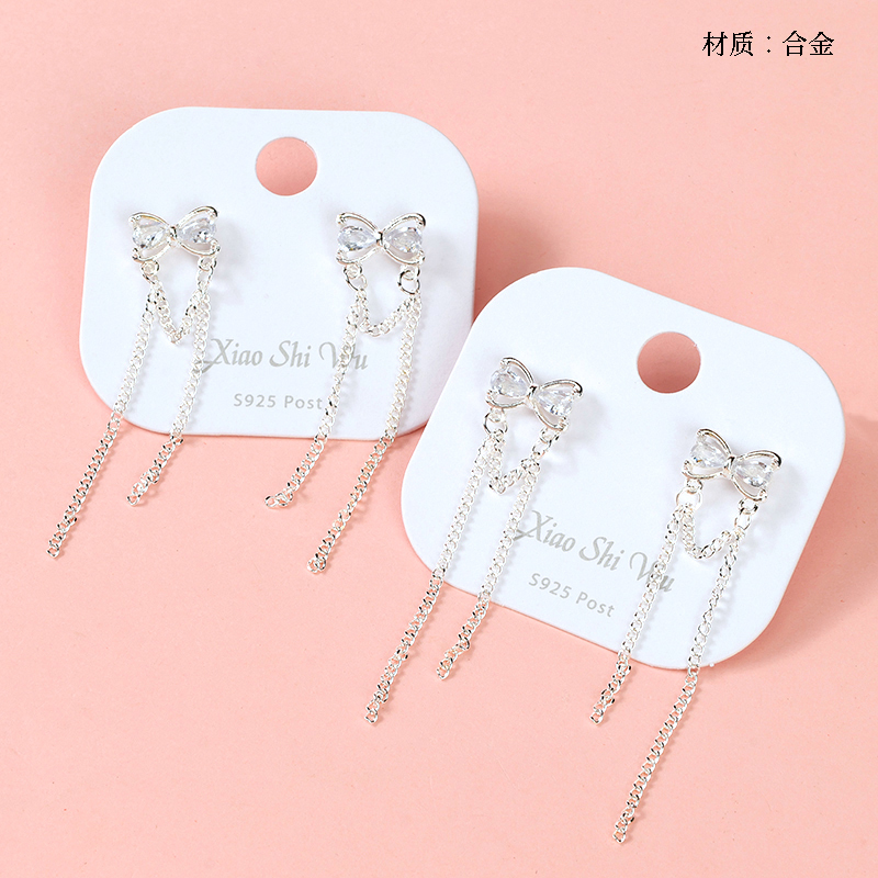 Order Long Zircon Bow Tassel Stud Earrings today and experience superior quality with excellent service. Join thousands of satisfied customers who trust us for their product needs. Shop now for the best deals and fast delivery!
