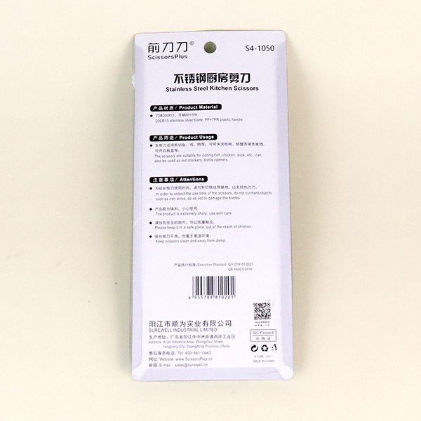 Our S4-1050 kitchen scissors is an excellent choice for customers seeking quality and value. Each product undergoes strict quality control to ensure it meets our high standards. We offer competitive pricing without compromising on quality. Whether you need S4-1050 kitchen scissors for personal use or bulk orders, we have you covered. Fast shipping and reliable customer service make shopping with us hassle-free.